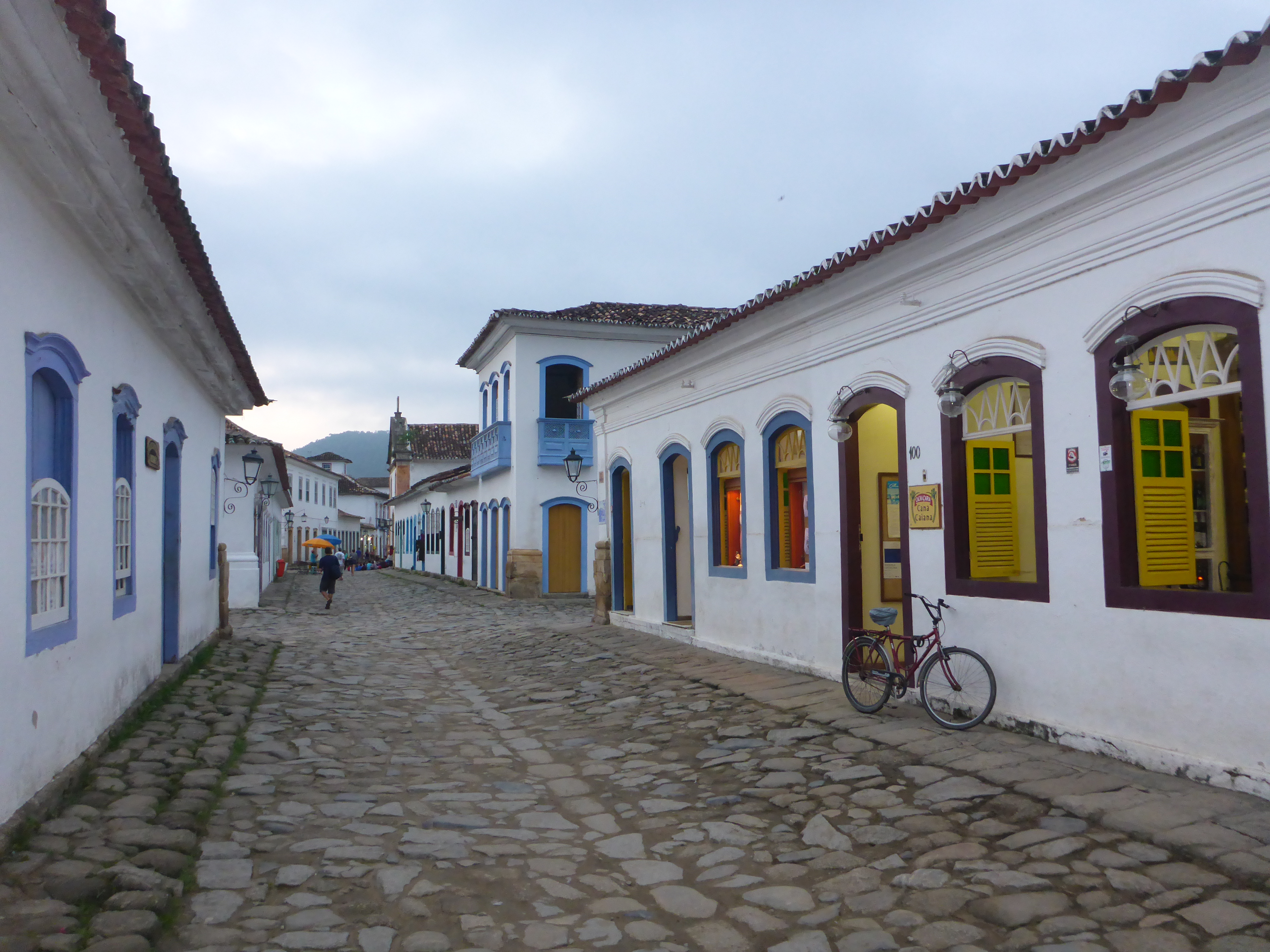 In my excitement to go somewhere new, I rushed to book us seats on a bus out of town at 11am Tuesday morning. Except, once Wolf looked at our receipt, he gently pointed out that I had actually booked us on a bus ARRIVING at 11am. Which meant we got to leave the house before the sun rose to make our 7am departure. Whoops :) I hoped my mistake would be worth a little lost sleep by the time we got to our next stop – Paraty. And I think it turned out well since we had an awesome stay in this little colonial town on the southern coast of Brazil.
