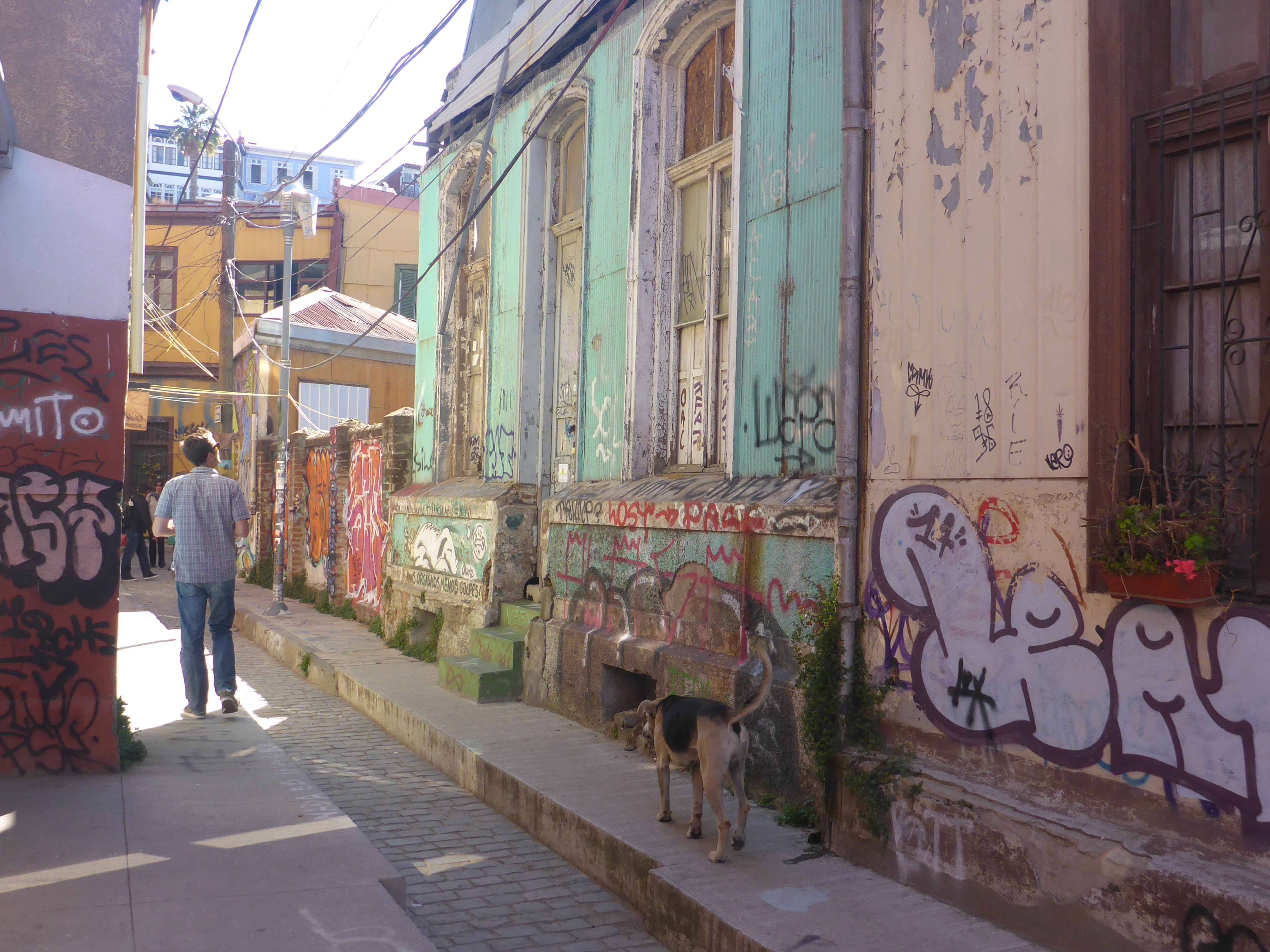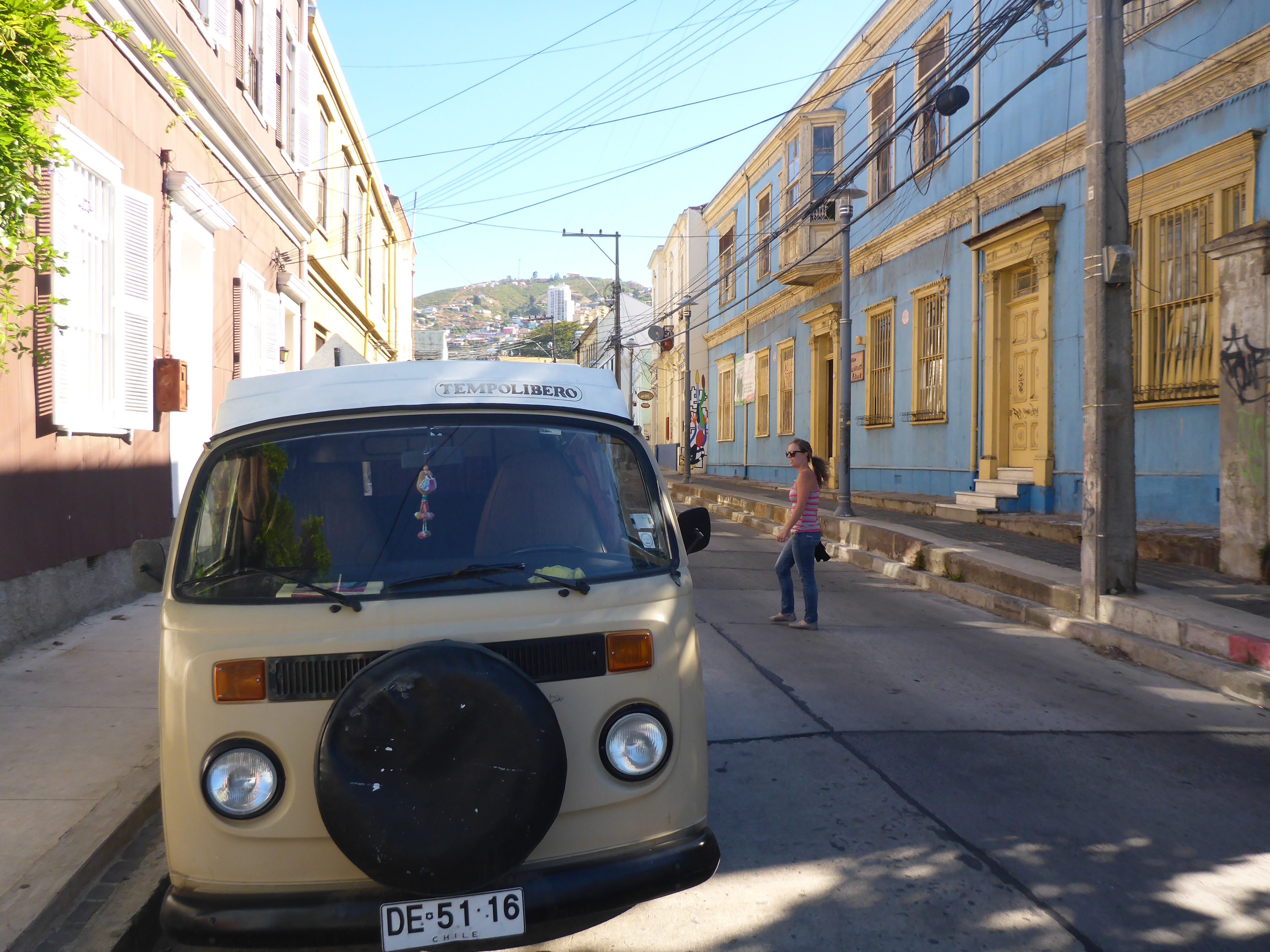 Arriving in Valparaiso without much of a plan, we stood outside the bus station for a while, trying to figure out what to do. Between the micro buses and the collectivo taxis our pro-status was totally shattered. Thoroughly confused, we finally managed to hail a taxi and figure out directions to our apartment, which turned out to be a fun adventure in itself with the tiny, winding streets and the steep hills. Once we were settled in our apartment we made our way back down the hills to explore the city. Since we were staying up in the hillside, making our way down to the flatlands (El Plan) was a fun wander down super street hills and colorful houses… we were already loving Valparaiso.