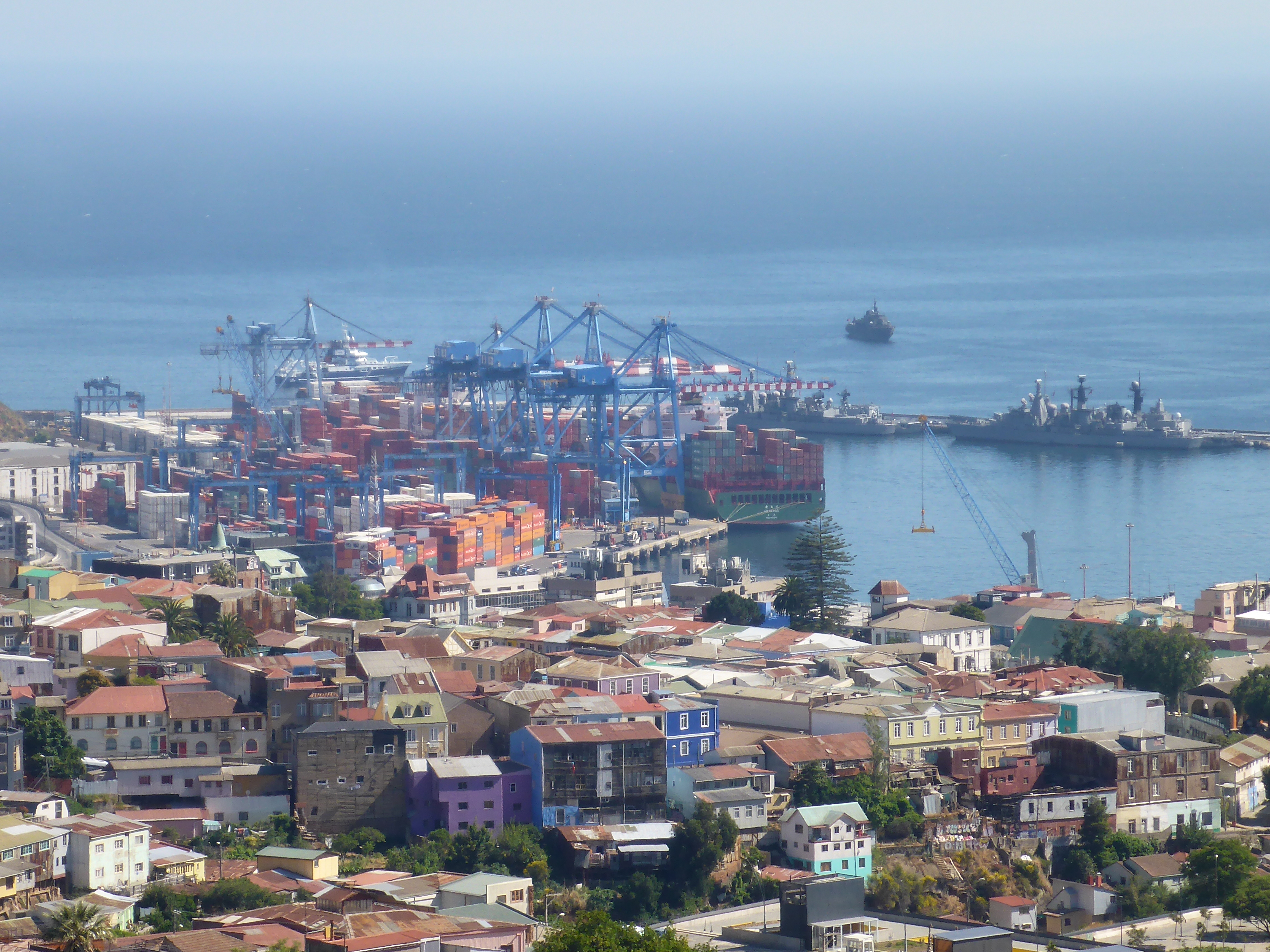 We were fascinated, especially now, since we now have a better idea of everything that goes into moving those containers around. In addition to the commercial boats, the harbor is also home to a whole fleet of Chilean military ships, which came and went during our stay. We even saw a submarine come in and dock for a few days – so awesome!!!