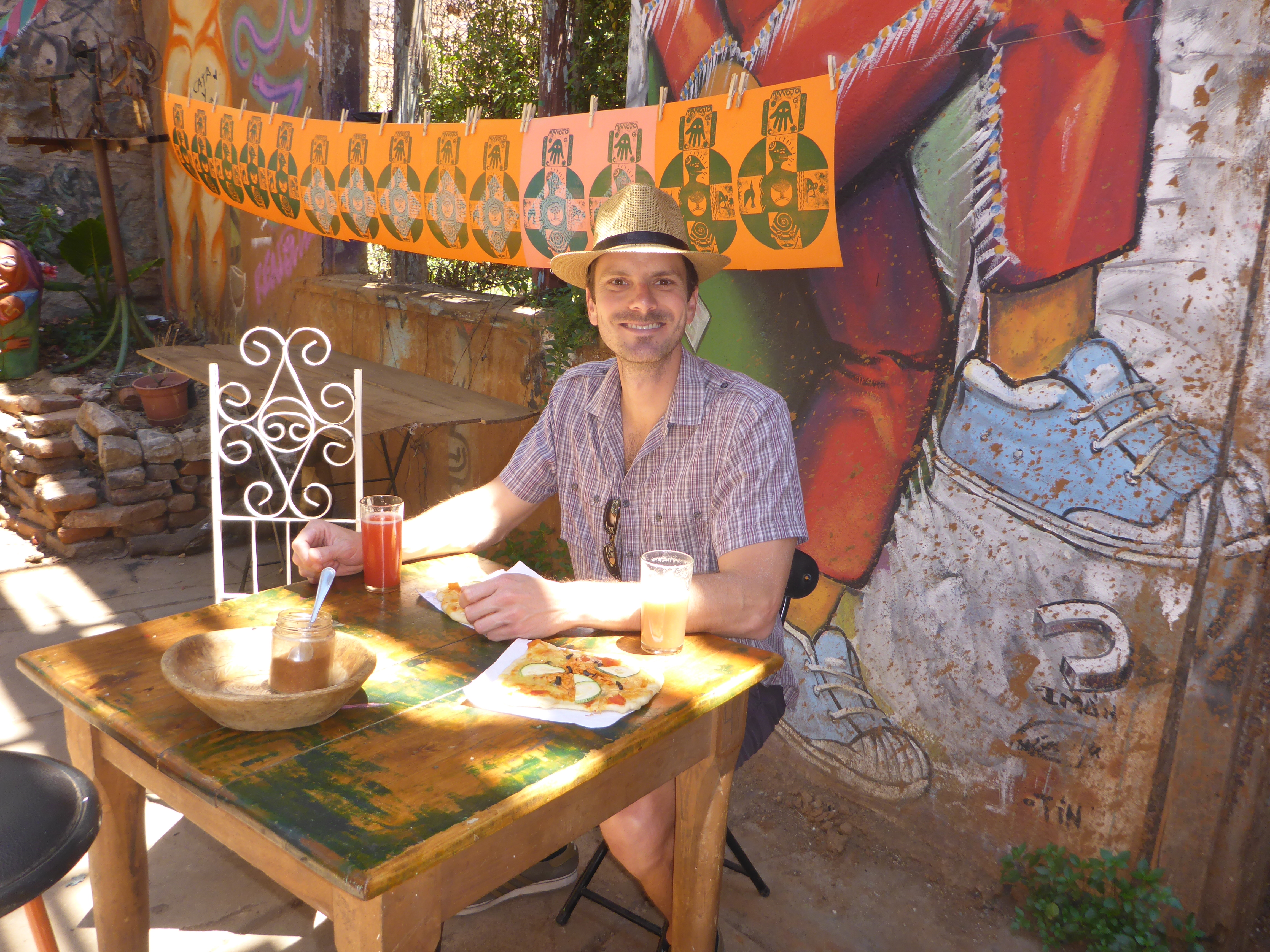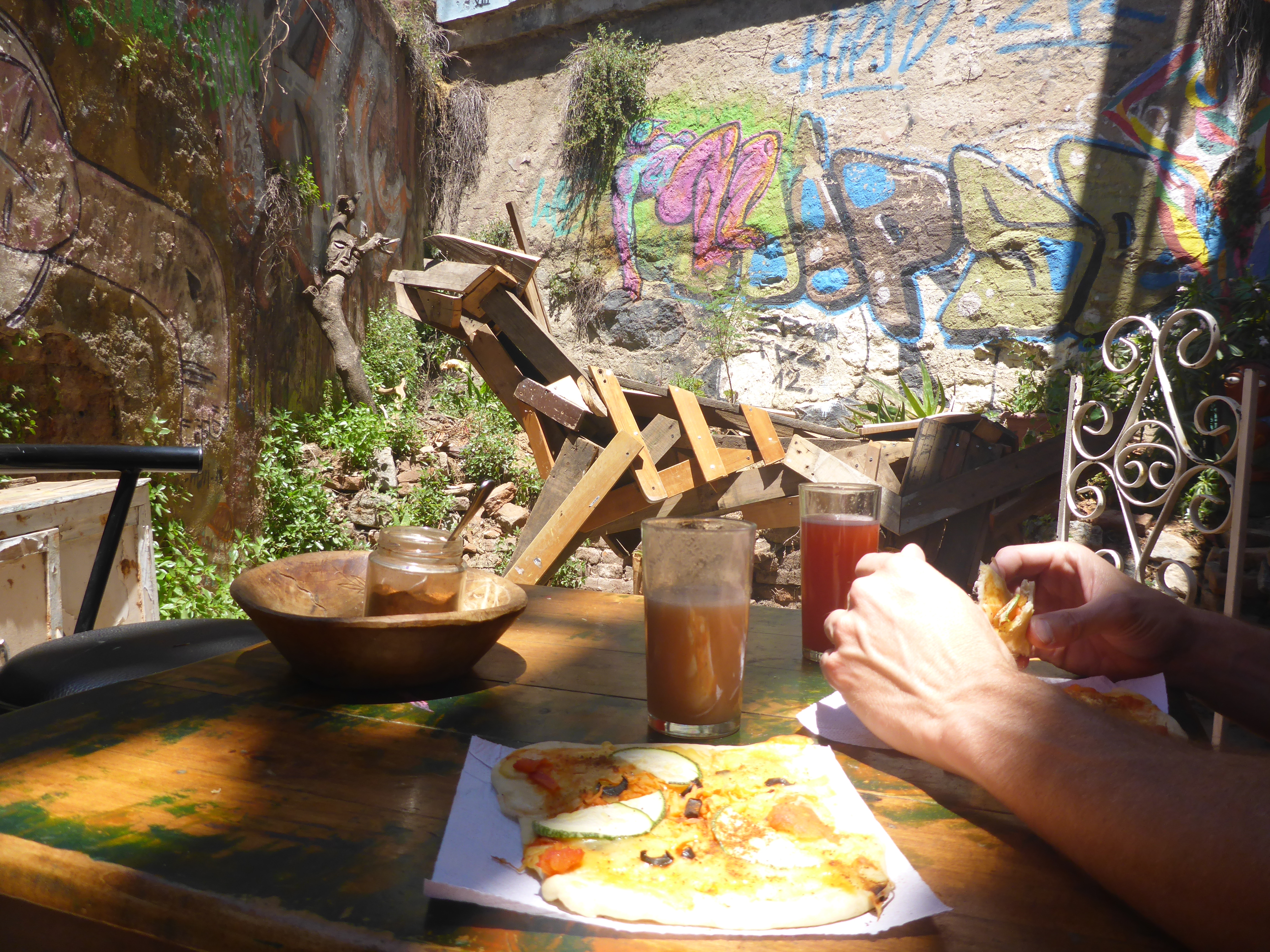 The place was just so darn unique. Nestled between a stairway and a crumbling building, the little open air restaurant had three things on the menu – pizza, juice, and chai tea. The guy running the join three our pizzas into the oven and then ran back to the art gallery where he split his time. The pizza was awesome, the juice was fresh, his art was cool, and the setting was, for me, quite memorable.