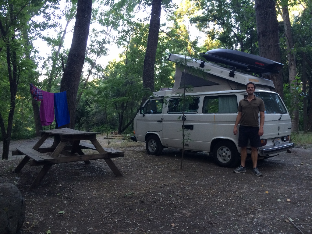 We had chosen our campsite, Las Manantiales, because it was off the main road and we figured it would be quiet. When we arrived, we discovered that they had three huge pools, each packed with families enjoying a cool dip on a hot day, and a couple of tour buses. One of the folks at receptions walked us down to see the campsites, and proceeded to share a lot of information about the bathrooms that I really couldn’t comprehend…. He tried over and over again using different words, and eventually gave us. We figured it would work fine anyway and we set up camp. The pools looked pretty tempting so before much else we decided to give them a try and changed into suits. Miraculously, when we wandered to the lowest pool, everyone was clearing out and we suddenly had the place to ourselves. Although we weren’t quite sure of the details, it looked like the pools were fed by the river (logically since the waterfalls were just down the road). We checked for creepy-crawlies, and found quite a few, but eventually opted for a section of the pool that seemed critter-free and jumped in to the icy water. It was freezing but felt awesome.