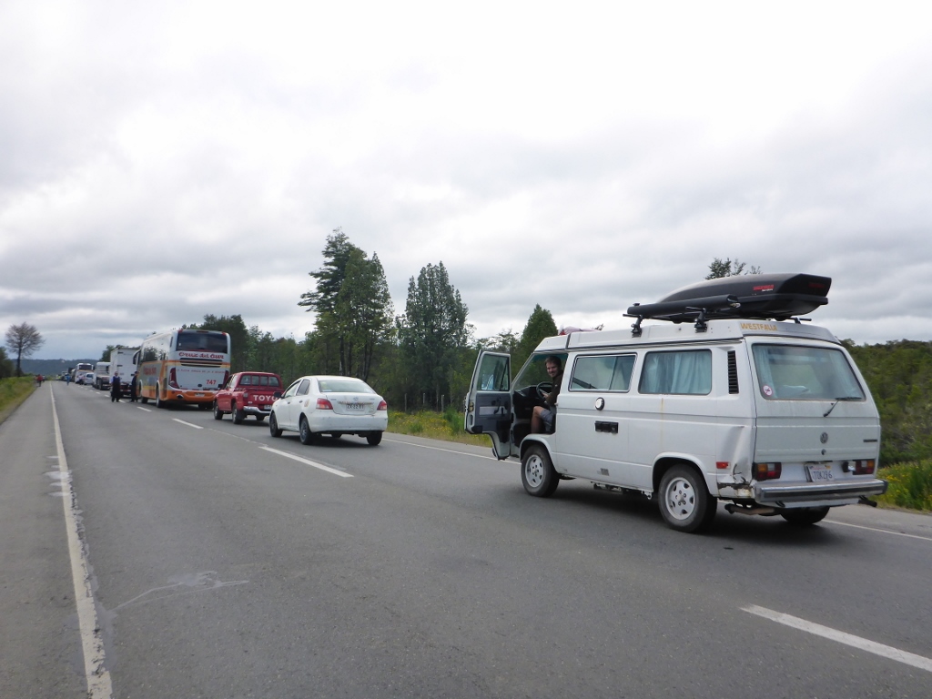 Back on the road again, we didn’t get very far before traffic came to a halt. Everyone in front of us had already exited their cards, walking around and generally killing time.