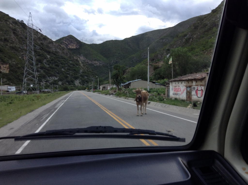 The road out of Cusco wound through a series of valleys, often with heavy fog, and through lots of cute little towns. We stopped for lunch in one, and made sandwiches at the main plaza, gathering a few confused looks from locals as they checked out license plates.