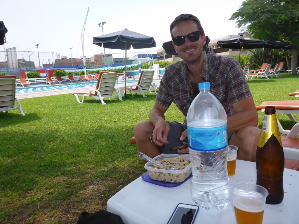 The following morning we would make our way towards Lima. We had heard about Lima’s German Club from a couple we’d met down in Patagonia, and decided to give it a try. Despite tons of traffic coming into the city we arrived in the early afternoon and pulled up to the German Club hoping everything we’d heard would be true. Behind a private gate, the security guards asked for our passports and then sent us up to the main office where the staff welcomed us and explained the facilities and where to park. The German Club turns out to be a country club, smack in the middle of Lima. Tennis courts, soccer field, several swimming pools… everything wealthy families in Lima might want. But, given the roots of the club’s founders, they also offer camping and use of the facilities free to anyone presenting a German passport. So just like that, we were in.