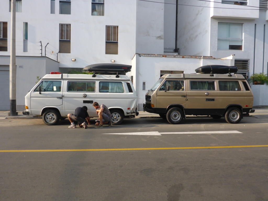 Later in the afternoon we made our way back to Miraflores to meet up with Miguel, a Westy owner living in Lima who we hoped might be able to help us fill our empty propane tanks. It was so fun to meet Miguel and chat with him about his van, recent trips, and also share with him what we’d been up to.